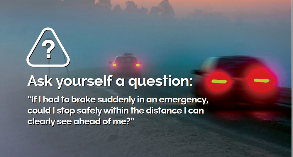– Be ready to slow down and take more care if you need to, particularly when approaching a bend and on exposed stretches of road.